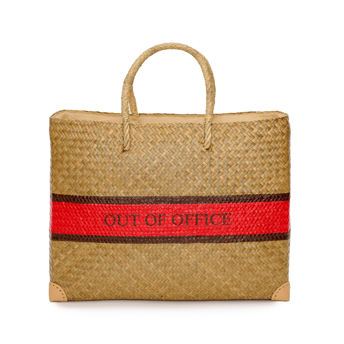 Carry your essentials with the Jumbo Straw Shopper – Out of Office. This straw beach bag fits towels, sun cream, books, and more.