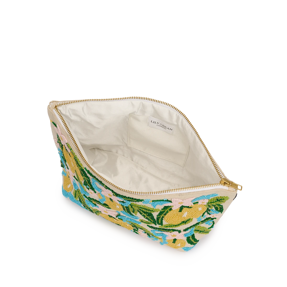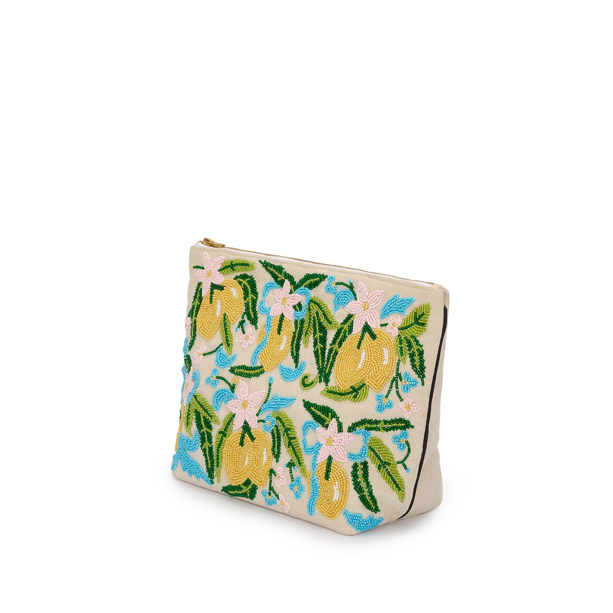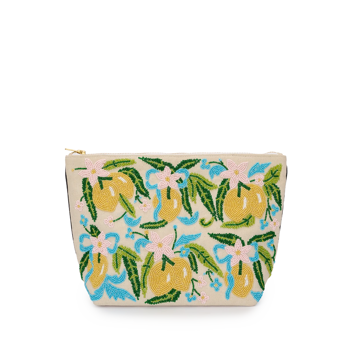 Expertly crafted with hand beaded details, The Almafi Cosmetic Bag is the must-have accessory for every makeup enthusiast. Keep your beauty essentials organized and easily accessible with this stylish and functional cosmetic case. Elevate your beauty routine with the perfect combination of beauty and practicality.