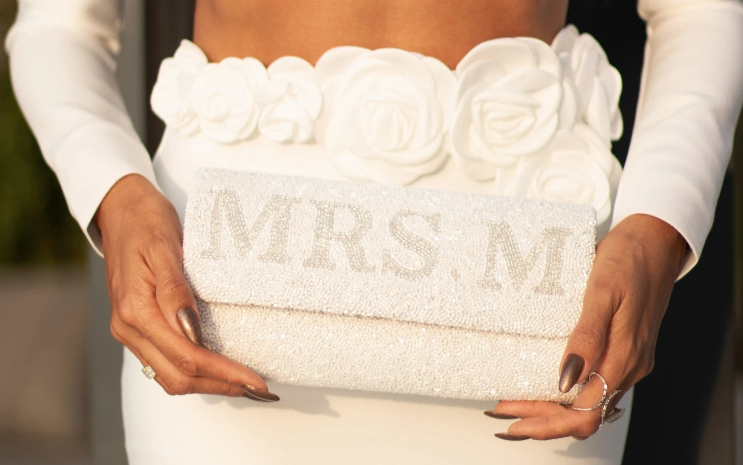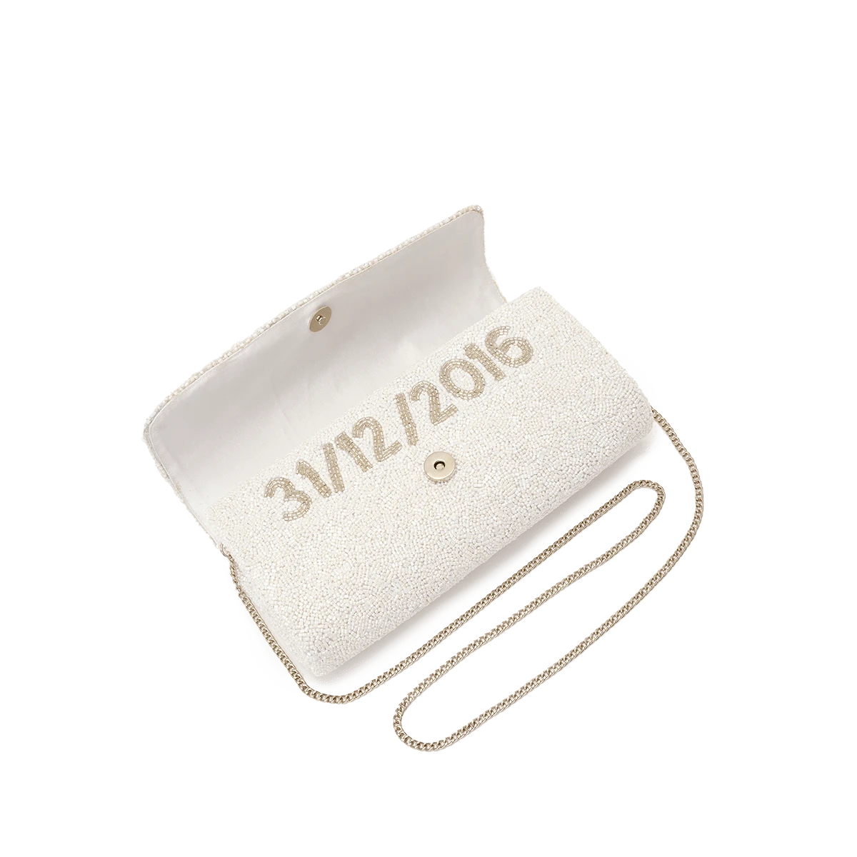 This customised bridal clutch is the ideal gift for any wedding or new mother. The outside and inside can be tailored to your liking, with elegant silvers and whites to choose from. Each piece is hand-beaded by skilled artisans, making it a unique and special addition to any wardrobe.
