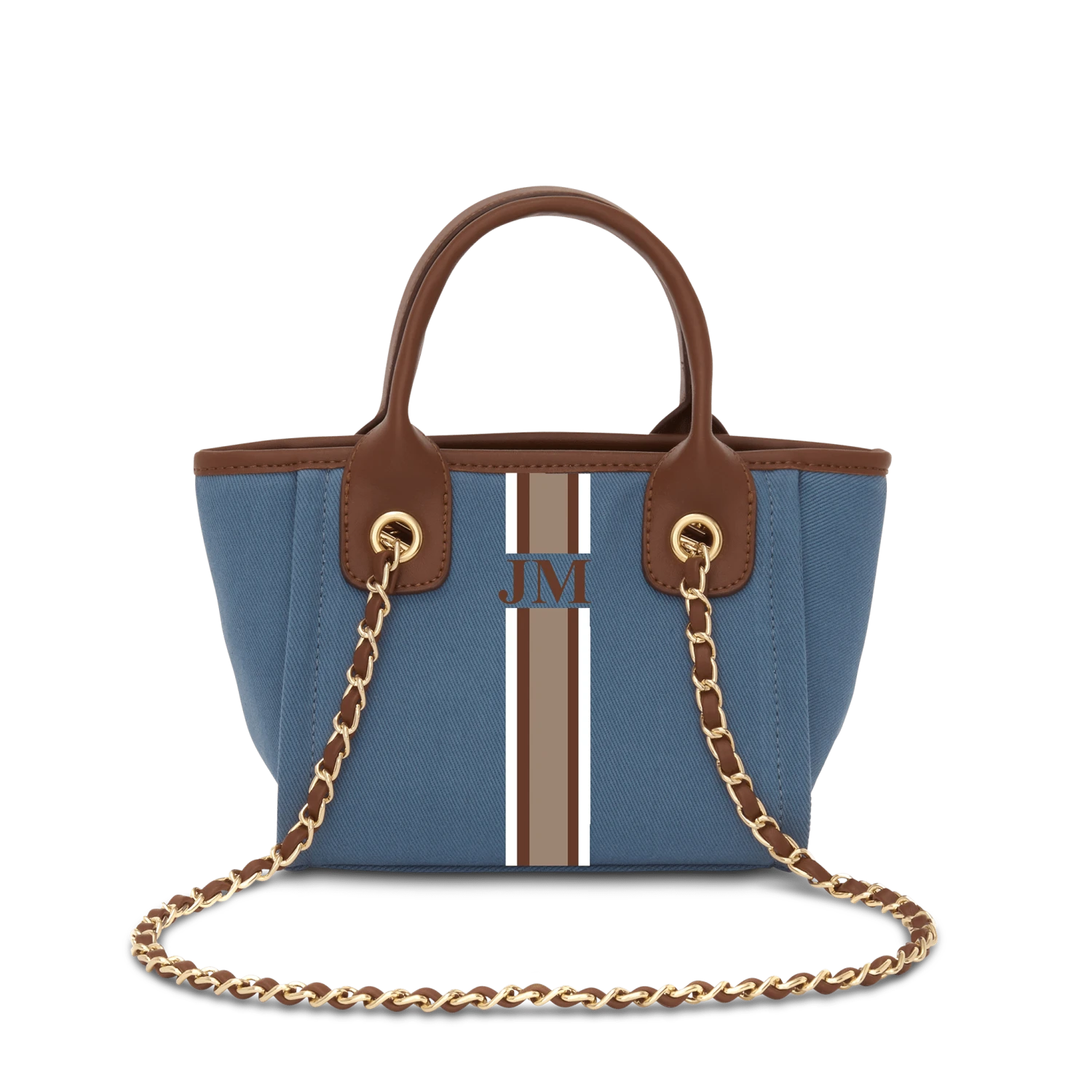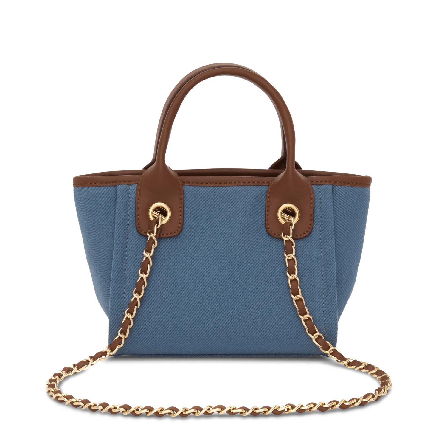 Tote bags continue to trend this season and our Lily mini me canvas tote in dark denim is the perfect bag for everyday wear. Big enough to fit all your essentials in, it has a lined interior and a zipped inner pocket for safe storage.Â