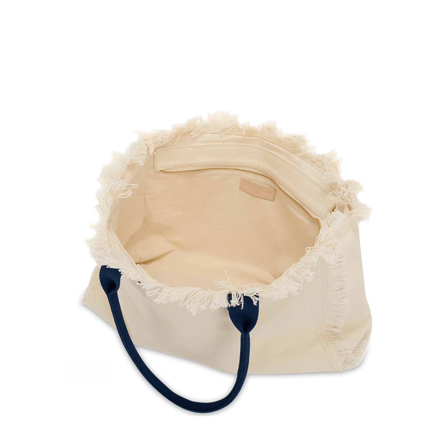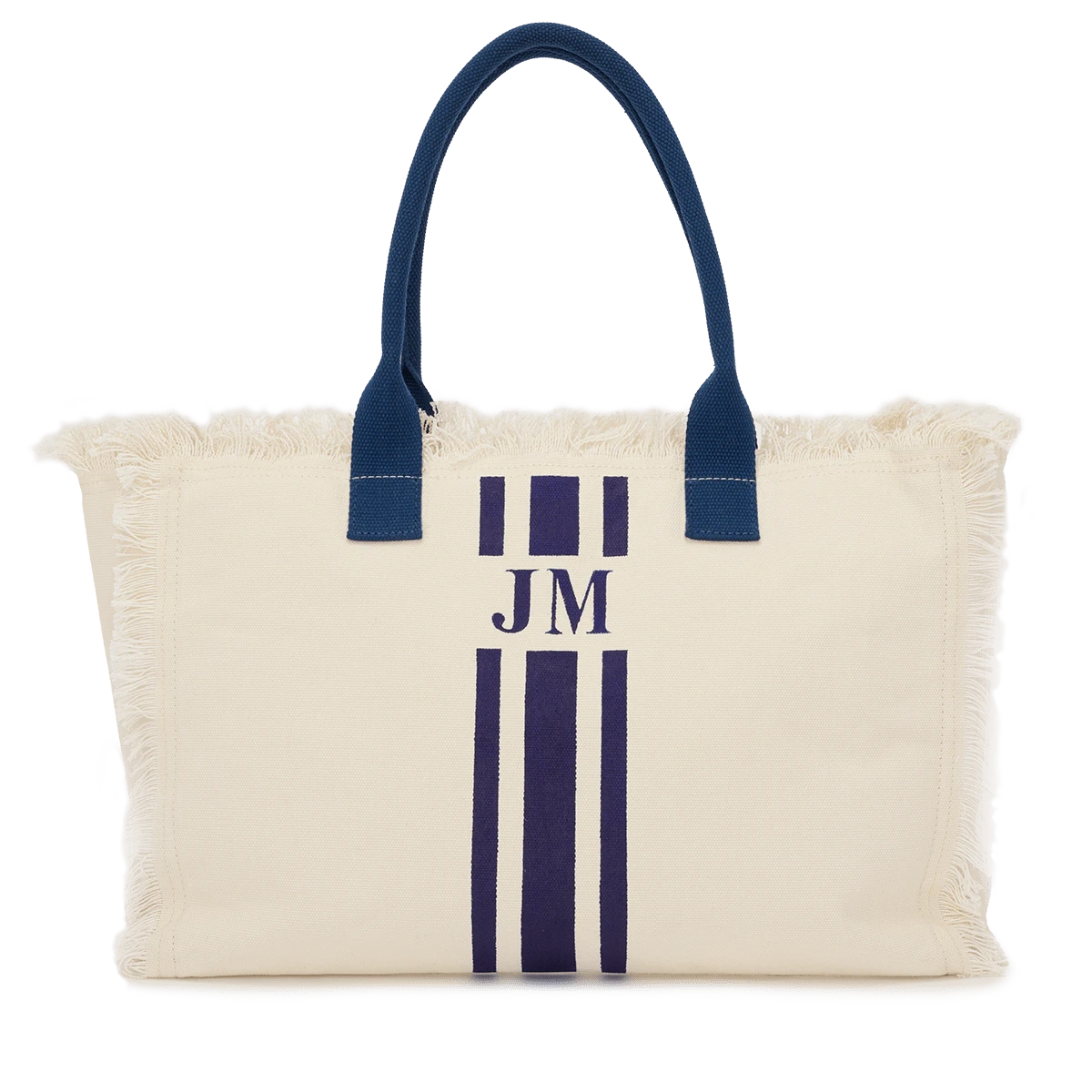 The Lily Fringe Tote – Cream & Navy