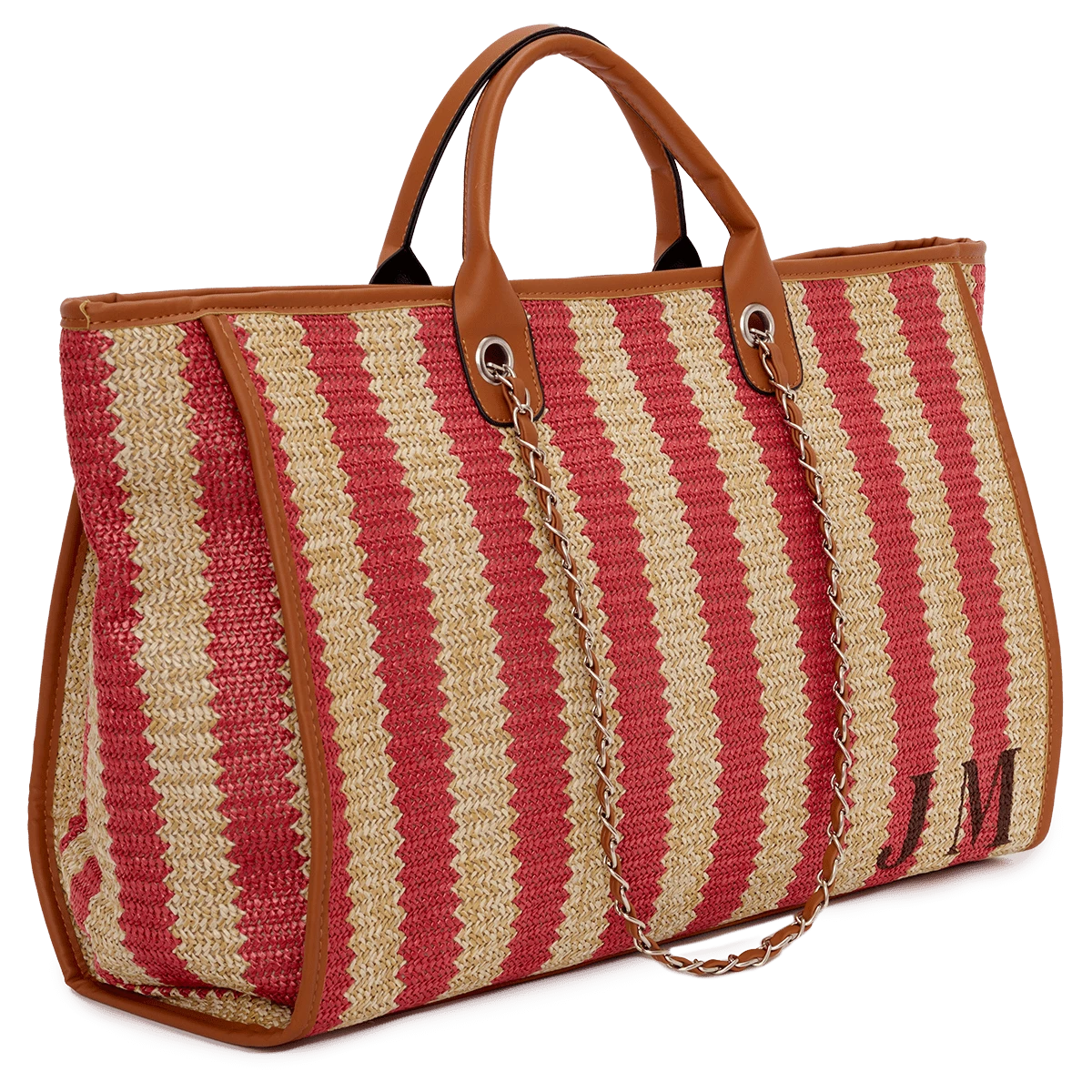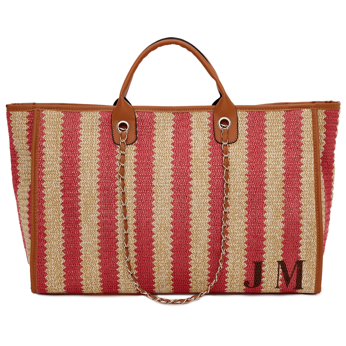 A fun red and cream striped tote, perfect for summer, with the added bonus of your initials on the bag.