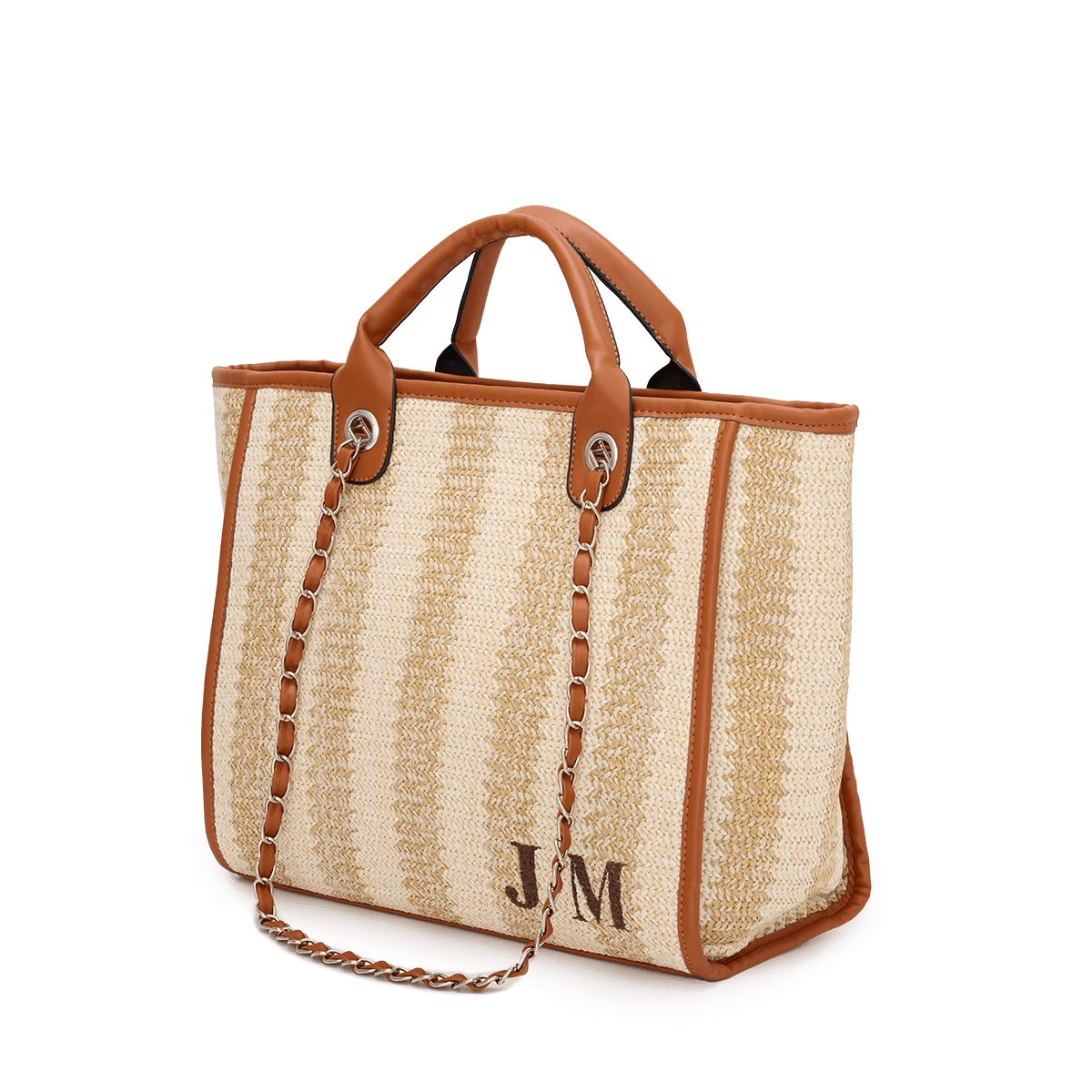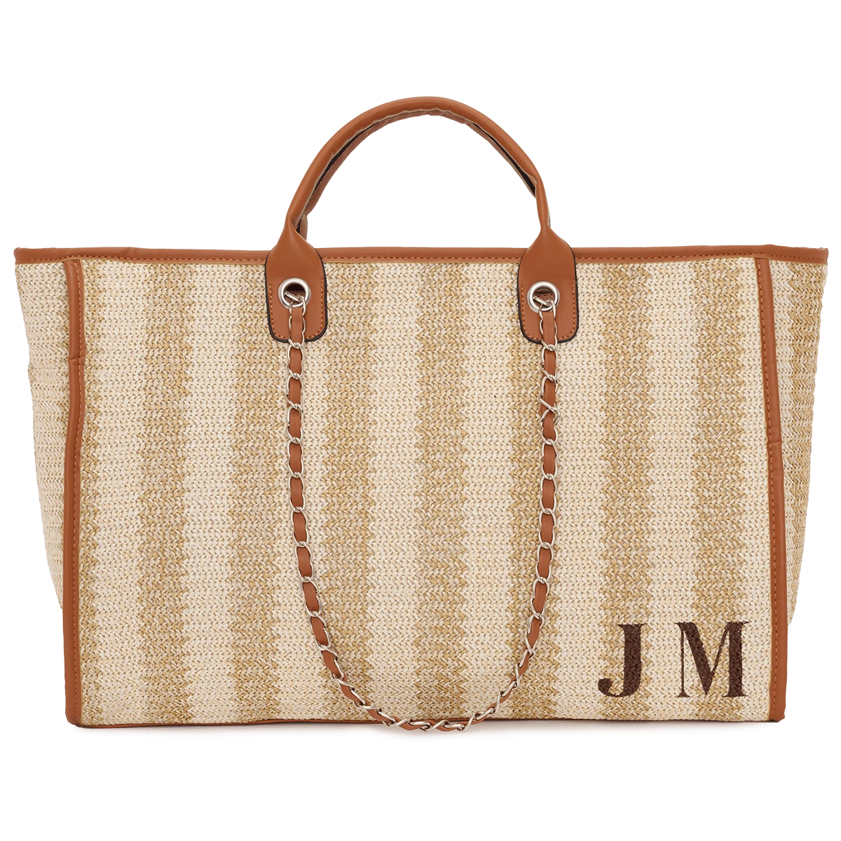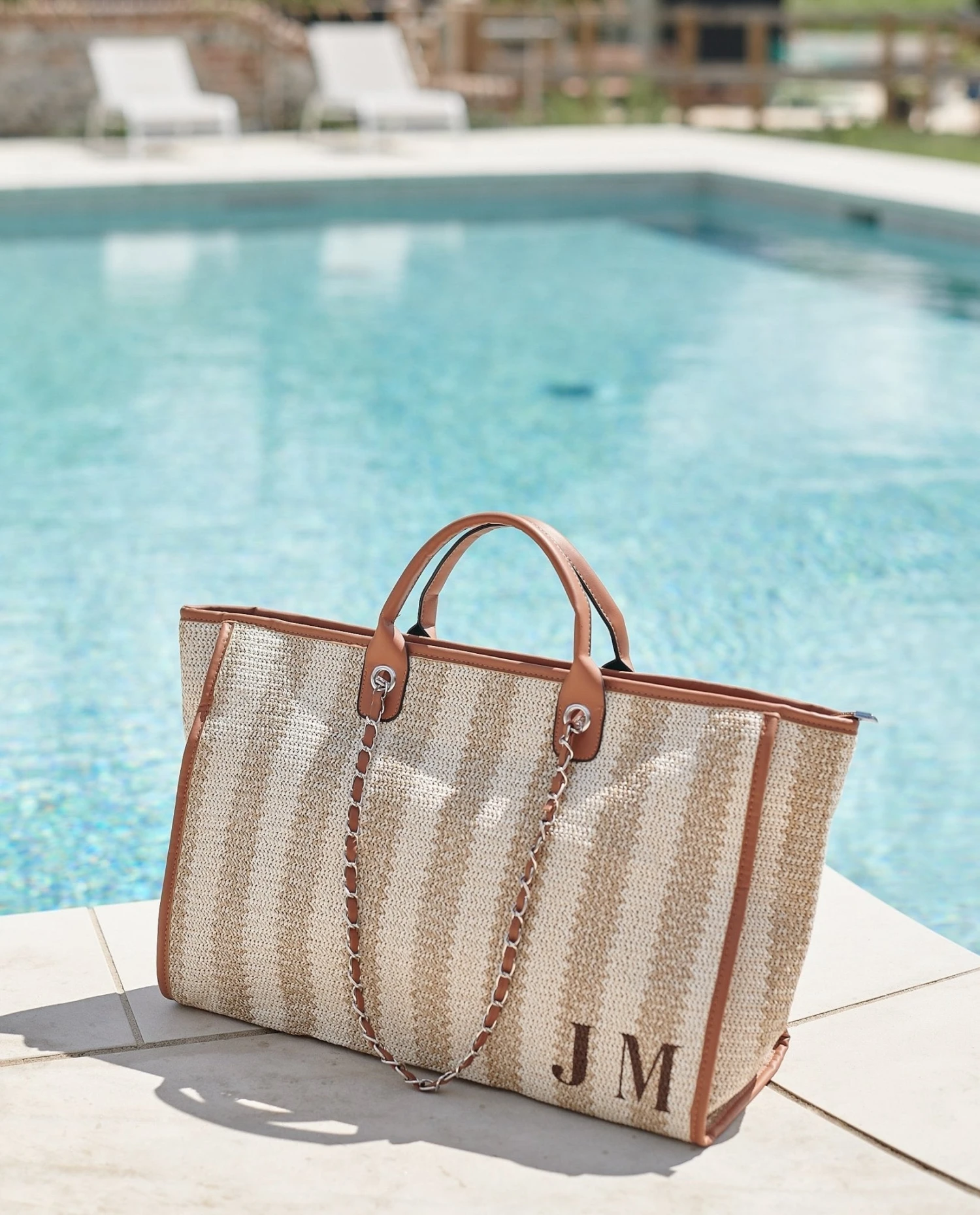 A classic cream and tan striped tote, with the added bonus of your initials on the bag.