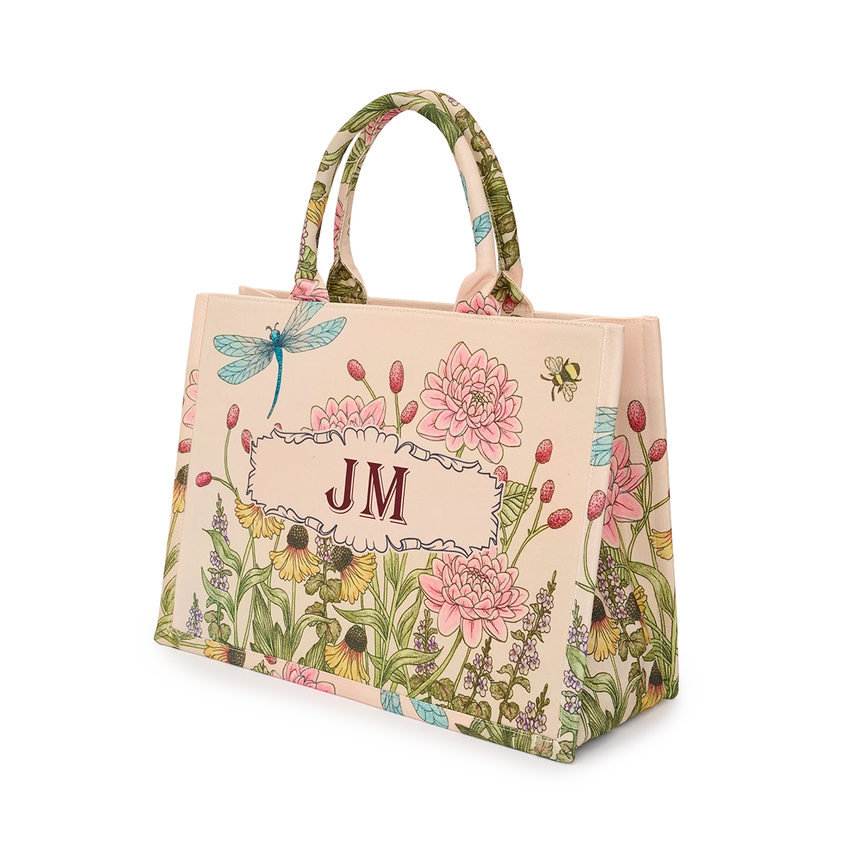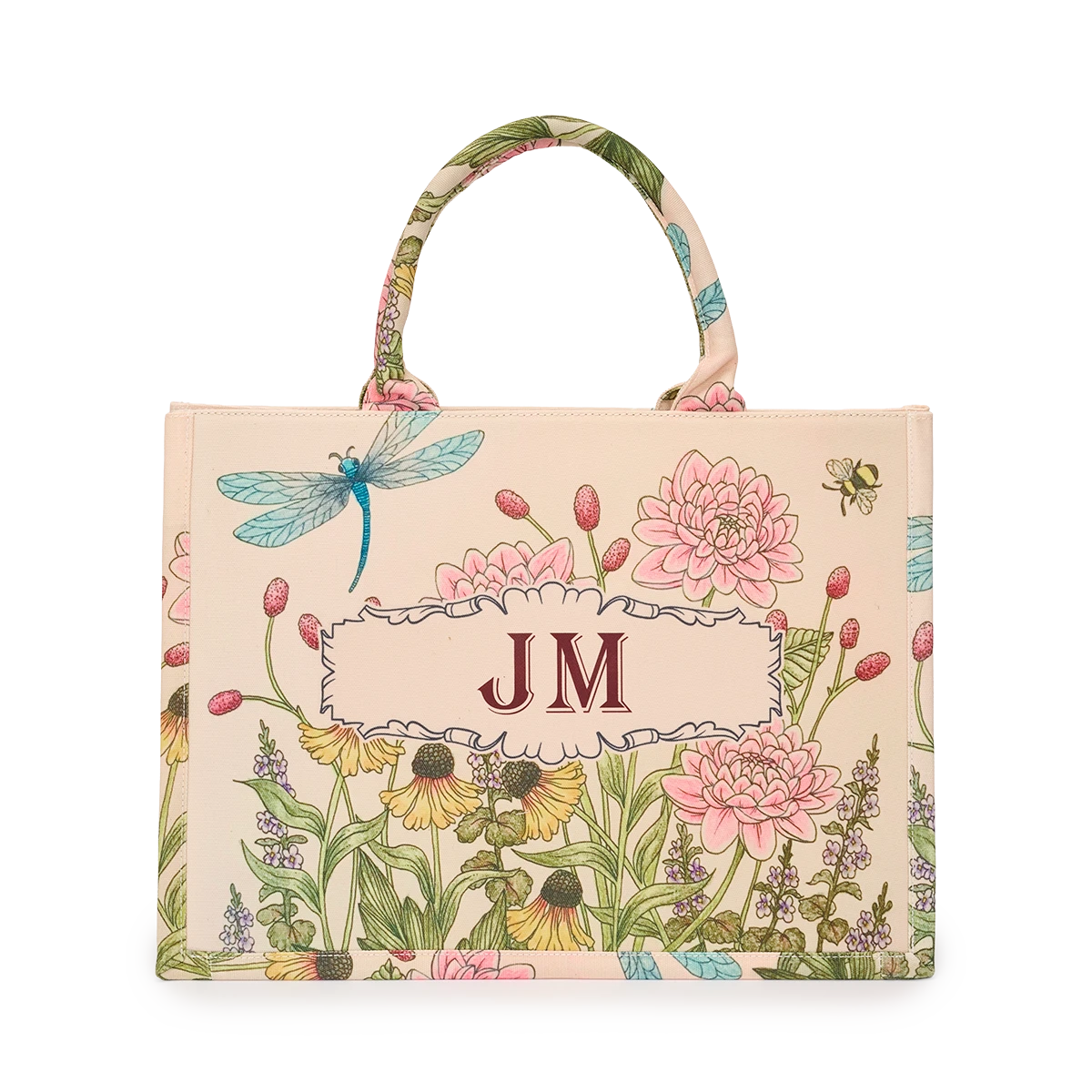 This durable canvas tote features vibrant wild flower scenes artfully arranged to complement your personalized initials. Crafted with premium materials, it offers both aesthetic appeal and practical functionality for daily use. The botanical design showcases expert attention to detail, making each bag a unique accessory that combines natural beauty with personalized elegance.